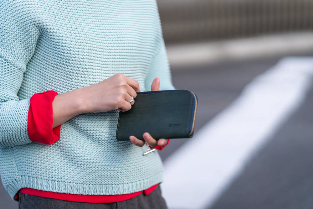 カワニシカバンの定番カラー“トスカーノリスシオレザー”の長財布 ファスナーでL字型にひらくコンパクトな長財布 https://www.youtube.com/watch?v=S7mJ3Q7LCWg&t=408s L型財布ricchyL[リッチーL]は、1万円札がギリギリ入る大きさで作られたコンパクトな長財布です。「長財布なのにスリムでコンパクト」を叶えるためにいくつもの工夫を凝らしたカワニシカバンの自信作です。 「長財布なのにコンパクト」を叶えるために、小銭入れのファスナーをなくしました。ファスナーを付けなくても小銭が飛び出さないよう試作を重ね、構造を工夫しています。 「長財布なのにスリム」なフォルムをキープできる秘密は、可動式のカード入れ。大きく動くカード入れが厚さを調節してしてくれます。 上質なイタリアンレザー“トスカーノ リスシオレザー”3色 カワニシカバン製品で使用している「トスカーノ リスシオレザー」は、中部イタリア、フィレンツェ近郊の町 サンタ・クローチェにあるタンナーで製作されました。 厳選されたヨーロッパ原皮のショルダー部分を用いて、じっくりと手間暇をかけた鞣(なめ)し加工の末に生み出された革は、柔らかく耐久性があります。 ↓トスカーノ リスシオレザーについてくわしくはこちらからhttps://shop-kawanishikaban.myshopify.com/pages/risusio 大容量なのにコンパクトの秘密は「可動式ポケット」 ricchyL[リッチーL]は小銭入れとカード入れの付け方を工夫することで、今までの長財布よりスリムでスマートに出来上がりました。 ポケットが動いて厚みを均等に ポケットを可動式にすることで中身に合わせてポケットが移動し、財布の厚みを均等にしてくれます。沢山入れてもスリムなシルエットです。 ファスナーをなくした小銭れ 薄いシルエットを保つために小銭入れにはファスナーをつけていません。ファスナーをつけなくても小銭が飛び出さないよう、小銭入れは本体より少しだけ低く製作しています。 本体のファスナーを閉じることで小銭入れの口もしっかりと閉まり、本体のファスナーを開けると同時に小銭入れの口も開くので、お金へのアクセスがワンステップで叶えられます。 可動式だからお財布のメンテナンスも簡単 可動式のポケットはメンテナンスにも便利。ポケットを取り出すことで、奥までしっかりと拭くことができます。 小銭入れと9個のポケット ①小銭入れ 中央にある小銭入れは、財布の中身を仕切る役目もあります。 お札とレシートを分けたりすることで財布の中身をスッキリと整理できます。 ②可動式カードポケット カードを縦に入れるポケットが4つあります。安心の収納量です。 ③固定式カードポケット カードを縦に入れるポケットが4つあります。 ④ロングポケット(マチのない方) マチのない方には、お札を入れます。コンパクトさを追求し、一万円札ぴったりに製作しております。 ⑤ロングポケット(マチのある方) マチのある方にレシートや領収書、カードポケットに入りきらないカードを収納できます。※一万札ギリギリの大きさで製作しているためマチ側にお札を入れると、ファスナーに引っかかる場合がございます。 ⑥マチ 「マチ」の内寸法は約3.5cm。スリムなお財布の容量を増やす工夫です。 レザーの色に合わせて選ばれた糸 カワニシカバンのレザーアイテムは、革本来の質感を残したものから華やかに染め上げられたカラーまで、数種類のお色で製作しております。...
