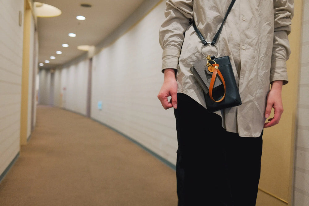Mini Wallet Charm ミニウォレットチャーム|サンドレザー 財布を、さっと手に取れる距離へ。ランチや近所の外出に、ちょうどいいかたち。 Concept 小銭・紙幣・カードを最小限持ち歩ける、吊り下げ式のミニウォレットです。 バッグから財布を取り出すことなく、 使いたいときにそのまま手に取れる距離感を目指しました。 Detail 2つのポケットで中身を分けて整理でき、 たっぷり入れてもスナップでしっかり閉じられるため安心です。 容量目安:カード 5枚 / お札 8〜10枚(3つ折り) / コイン 15〜20枚 Material 素材には、オリジナルレザー「サンドレザー」を使用。 表面を毛羽立たせる加工により、傷が目立ちにくく、使い込むほど表情が深まります。 ストラップには、 「栃木レザー」を使用しています。 サンドレザーについてくわしくは こちら栃木レザーについてくわしくは こちら Color キャメル/ネイビー/グレー/グリーン Specification サイズ 本体:H6.7 × W11 × D2.2 ストラップ:H14.5 × W1.2(...
