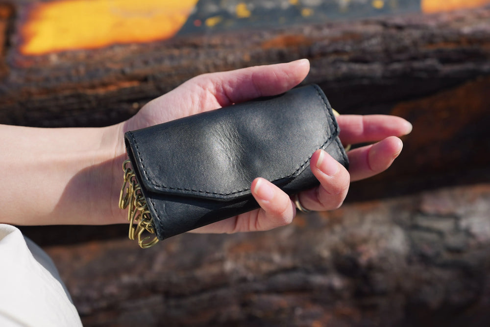 keyt Wash keyt[ケイティ]|トスカーノ リスシオレザー ウォッシュ 洗い加工によって引き出された、均一ではない表情。“これがいい”と思えた状態を、そのままかたちにしました。 Concept 製造の過程で生まれる、わずかな個体差。その不均一さを否定するのではなく、洗い加工によって受け止め、 革そのものの魅力として引き出しました。 トスカーノ リスシオレザーに洗いを施すことで、 表面の緊張がほどけ、ひとつひとつ異なる印象へと変化します。 Detail 5連キーホルダーのうち1つはひとまわり大きく、スマートキーにも対応します。(※1) リング大:直径14mm(内径11mm)リング小:直径12mm(内径9mm)キーホルダー:直径30mm(内径25mm) ※1 機種によっては対応出来ないものもございます。リングの大きさをご確認の上ご購入下さい。 Material 素材には、トスカーノ リスシオレザーを使用。洗い加工によって、使い始めから手に馴染み、使い続けることで、さらに深みのある表情へと育っていきます。※天然素材の特性上、表情には一つひとつ個体差があります。トスカーノ リスシオ レザーについて詳しくは こちら Color レッド/ワイン/ブラック Specification サイズ H5.3 × W11 × D2.5 cm 重量 70 g 開閉...