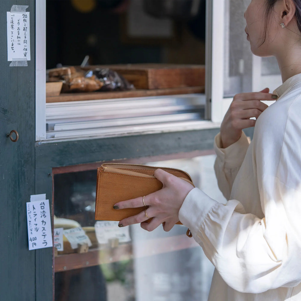 Youtubeで紹介しました。 カワニシカバンの定番カラー“サンドレザー”の長財布 ファスナーでL字型にひらくコンパクトな長財布 https://www.youtube.com/watch?v=S7mJ3Q7LCWg&t=408s L型財布ricchyL[リッチーL]は、1万円札がギリギリ入る大きさで作られたコンパクトな長財布です。「長財布なのにスリムでコンパクト」を叶えるためにいくつもの工夫を凝らしたカワニシカバンの自信作です。 「長財布なのにコンパクト」を叶えるために、小銭入れのファスナーをなくしました。ファスナーを付けなくても小銭が飛び出さないよう試作を重ね、構造を工夫しています。 「長財布なのにスリム」なフォルムをキープできる秘密は、可動式のカード入れ。大きく動くカード入れが厚さを調節してしてくれます。 オリジナル素材“サンドレザー”4色 【新商品】カバン職人おすすめの新作レザーが完成したので、魅力を全力でお伝えします! 皮を革へと加工するタンナー「セトウチレザー」さんと共同開発した「サンドレザー」は、革表面を毛羽立たせるよう加工することで天然の木目のような模様がついています。 触ると少しざらつきがある模様のおかげで、キズが目立ちにくく味わい深い雰囲気があります。 ↓サンドレザーについてくわしくはこちらから https://shop-kawanishikaban.myshopify.com/pages/leather 大容量なのにコンパクトの秘密は「可動式ポケット」 ricchyL[リッチーL]は小銭入れとカード入れの付け方を工夫することで、今までの長財布よりスリムでスマートに出来上がりました。 ポケットが動いて厚みを均等に ポケットを可動式にすることで中身に合わせてポケットが移動し、財布の厚みを均等にしてくれます。沢山入れてもスリムなシルエットです。 ファスナーをなくした小銭れ 薄いシルエットを保つために小銭入れにはファスナーをつけていません。ファスナーをつけなくても小銭が飛び出さないよう、小銭入れは本体より少しだけ低く製作しています。 本体のファスナーを閉じることで小銭入れの口もしっかりと閉まり、本体のファスナーを開けると同時に小銭入れの口も開くので、お金へのアクセスがワンステップで叶えられます。 可動式だからお財布のメンテナンスも簡単 可動式のポケットはメンテナンスにも便利。ポケットを取り出すことで、奥までしっかりと拭くことができます。 小銭入れと9個のポケット ①小銭入れ 中央にある小銭入れは、財布の中身を仕切る役目もあります。 お札とレシートを分けたりすることで財布の中身をスッキリと整理できます。 ②可動式カードポケット カードを縦に入れるポケットが4つあります。安心の収納量です。 ③固定式カードポケット カードを縦に入れるポケットが4つあります。 ④ロングポケット(マチのない方) マチのない方には、お札を入れます。コンパクトさを追求し、一万円札ぴったりに製作しております。 ⑤ロングポケット(マチのある方) マチのある方にレシートや領収書、カードポケットに入りきらないカードを収納できます。※一万札ギリギリの大きさで製作しているためマチ側にお札を入れると、ファスナーに引っかかる場合がございます。 ⑥マチ 「マチ」の内寸法は約3.5cm。スリムなお財布の容量を増やす工夫です。 レザーの色に合わせて選ばれた糸 カワニシカバンのレザーアイテムは、革本来の質感を残したものから華やかに染め上げられたカラーまで、数種類のお色で製作しております。 本革は染め上がりにも個性があるため、革と色の合う糸を選び、毎回糸を変える事は効率の面から見ると良いことではないでしょう。...