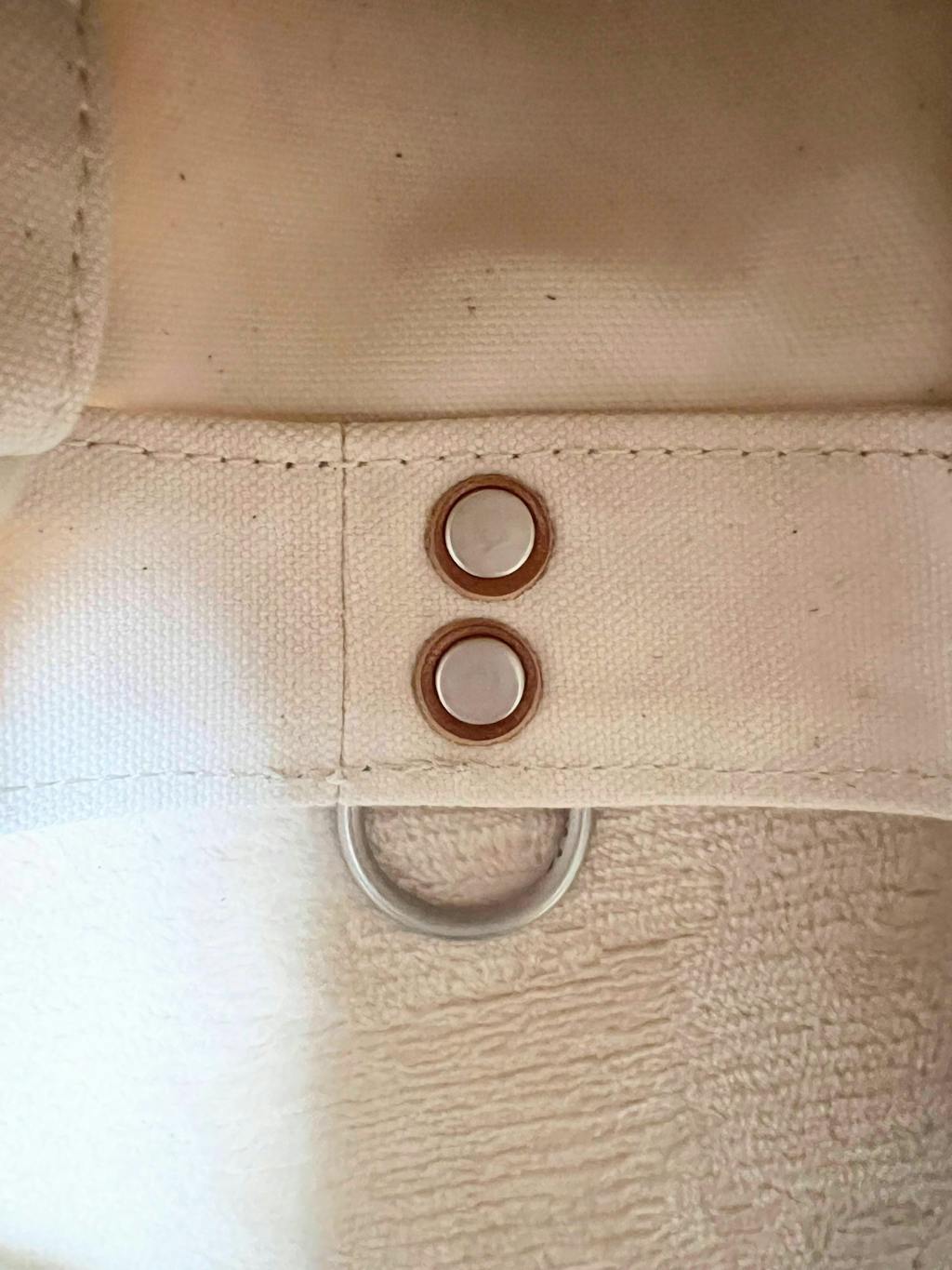 厚みのある18オンスのアーミーダック生地で作られたバッグは、裏無しでもしっかりと自立します。底部分は生地が2枚重ねになっており、バッグの土台を支えます。