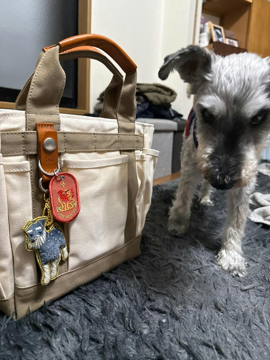 カワニシカバンでは、カラビナの代わりに専用のレザーのタグ「Dカンチャーム」をご用意しました。アウトドアモチーフをタウンユースのバッグに上品に落とし込みました。