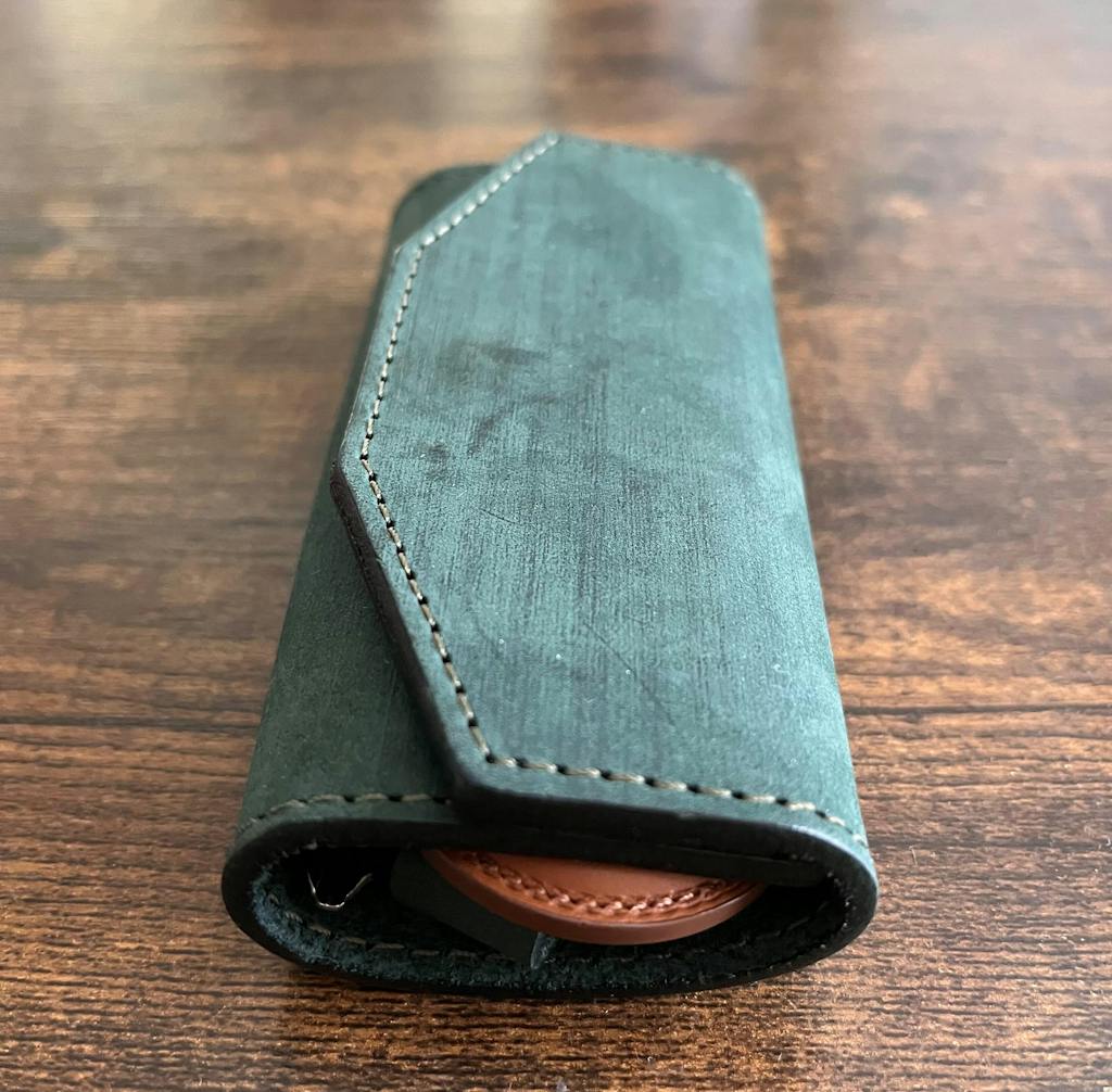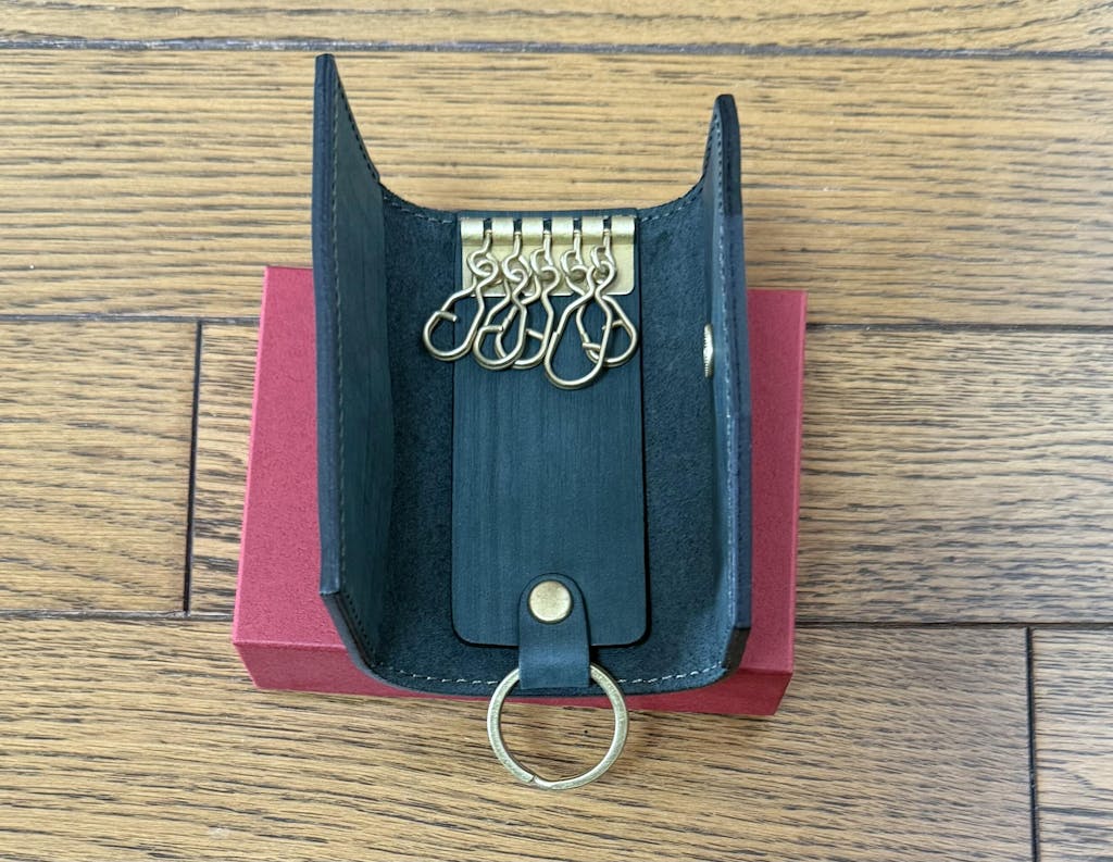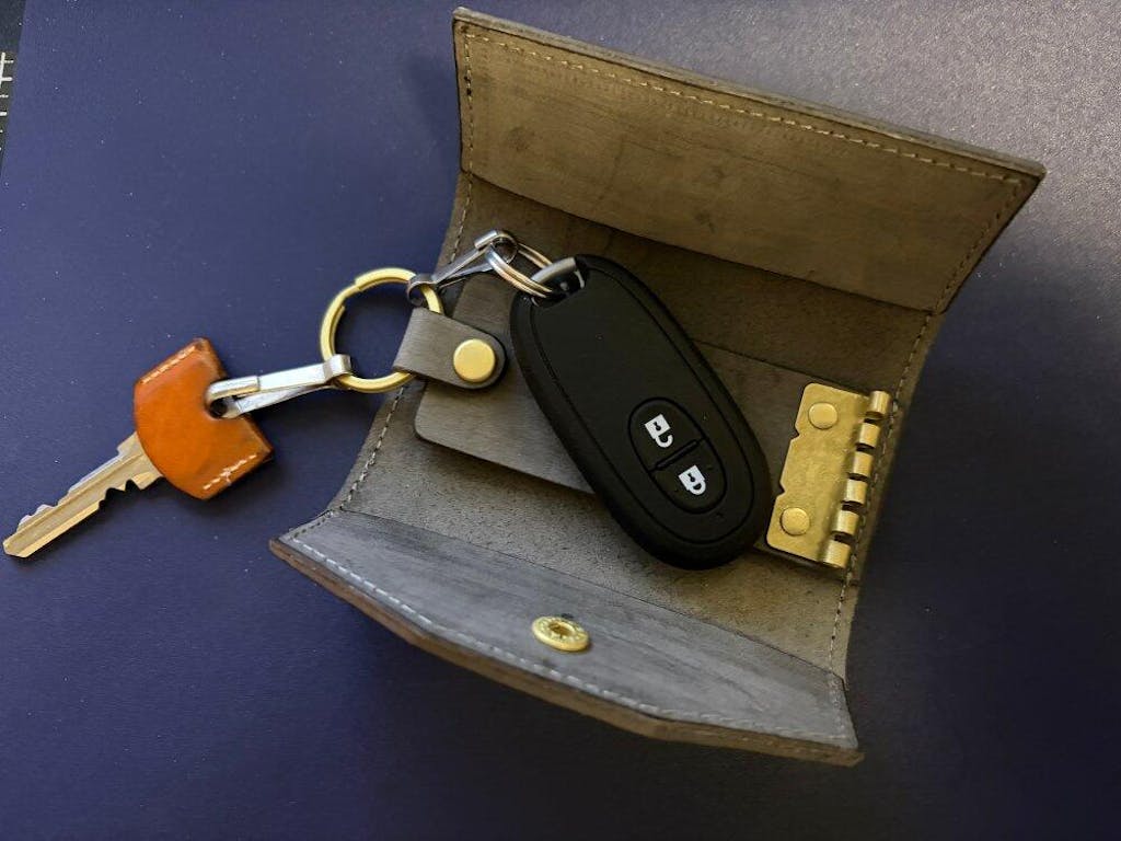 セトウチレザーで製作した3つ折りタイプのキーケースは、鍵を優しく包み込みすっぽりと片手に収まるシンプルなキーケースです。