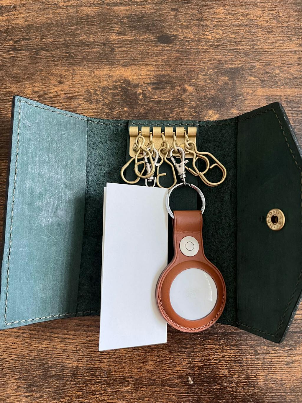反対側の大きなキーリングは、スナップを外すと簡単にキーケースから取り外すことができます。