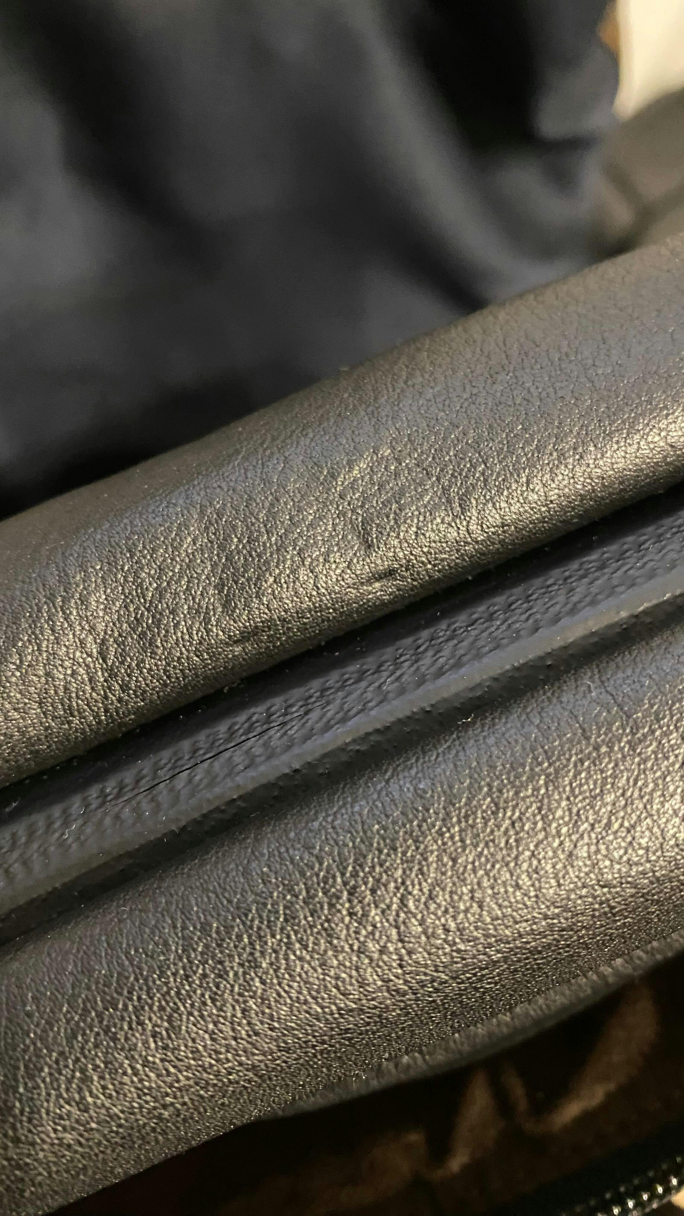 こちらのレザーリュックは、肩に当たる部分に厚めのクッション材を入れて、長時間でも負担が少ないよう設計されています。 そのため、使い始めの段階ではクッション材の存在感がレザー表面に少し出る場合があります。 強度や使用には問題ございません。